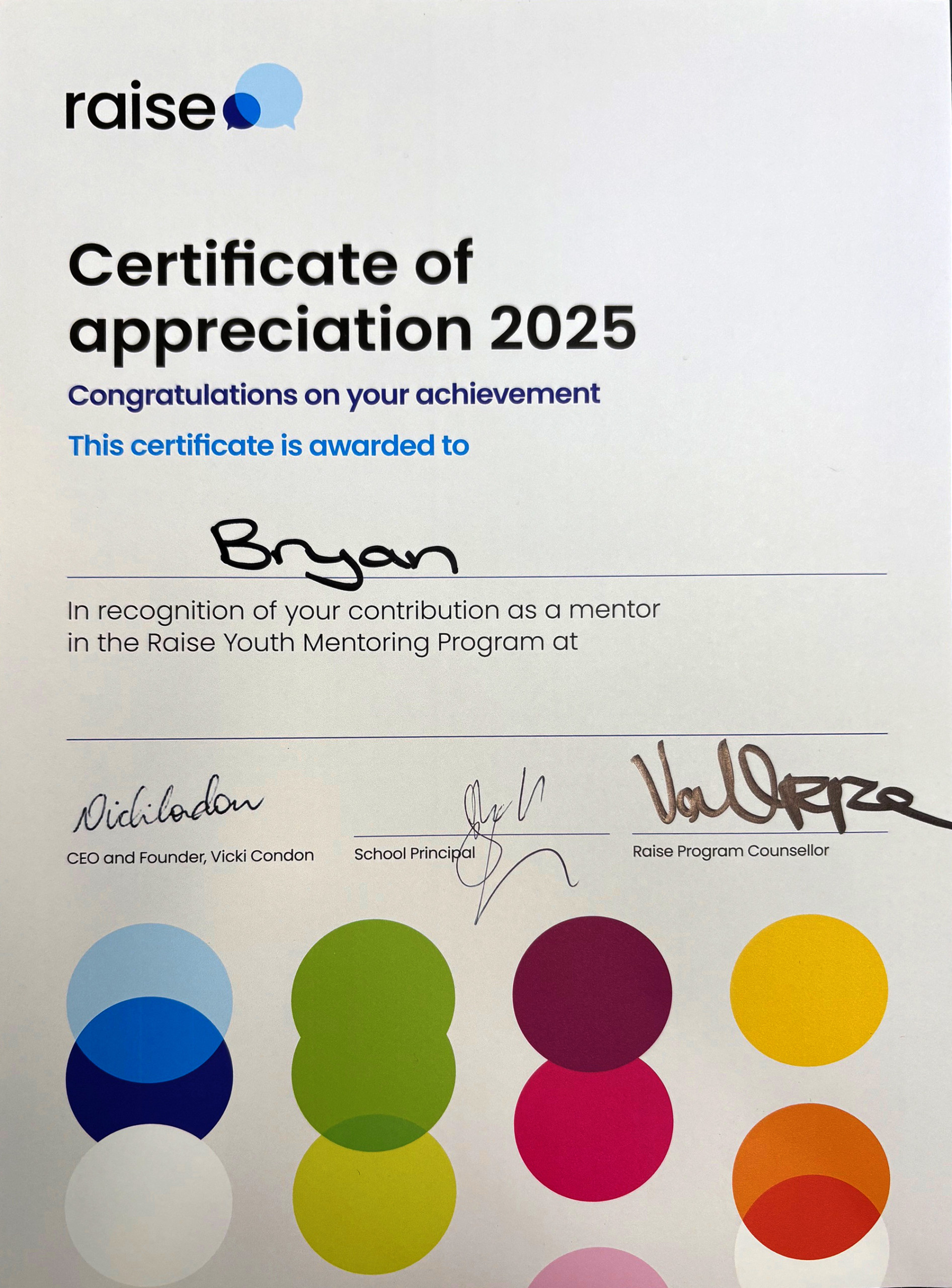 Our support of the Raise youth mentoring programs help to provide a positive impact on the wellbeing of young people at risk of disengagement in Australia, through best practice youth mentoring programs.